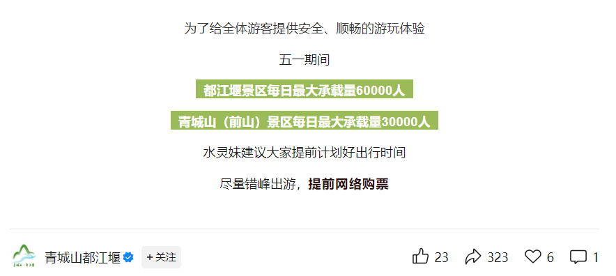 青城山-都江堰景区、都江堰中华大熊猫苑发布最新公告称五一期间参观要预约、限流